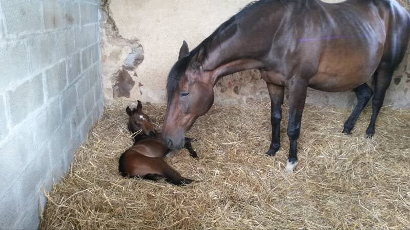 pour qu’elles puissent nous donner un ou deux derniers poulains, anglo évidemment. Et je me rappelais de la qualité de cette jument que j’avais déjà vue tourner dans le sud-ouest il y a longtemps... Il aura suffit d’un coup de fil, une mutualisation de transport et la voici à la maison !